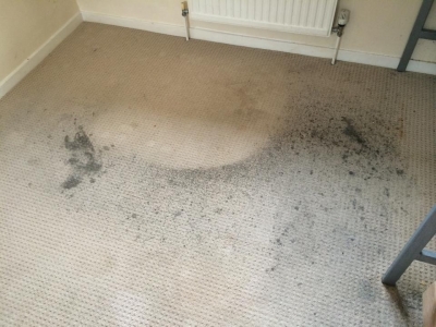 A badly marked bedroom carpet in Miskin